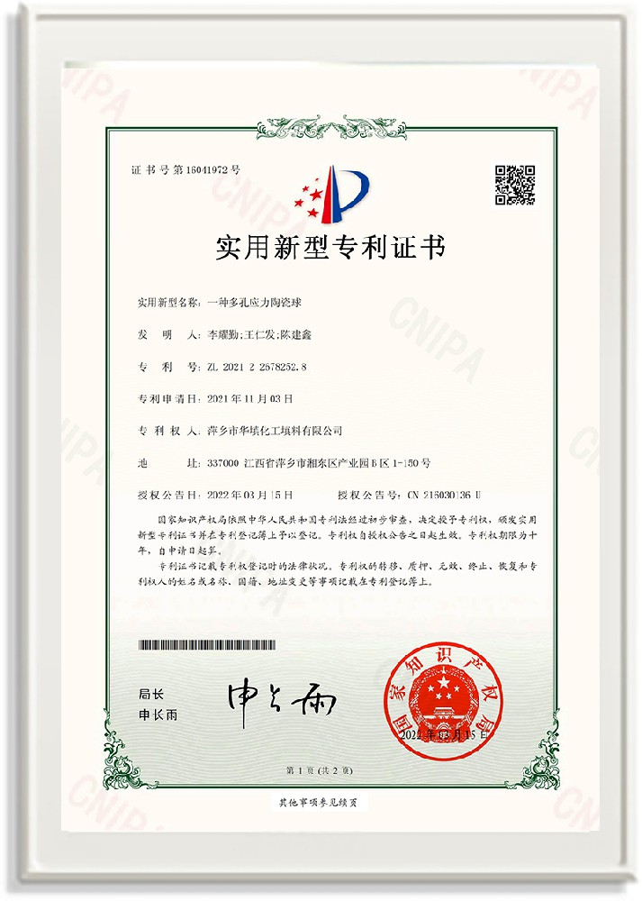 萍鄉市華填化工填料有限公司,位于320國道、109國道、浙贛鐵路、昌金高速公路貫穿其中,交通便利,是江西西部一顆燦爛明珠,創建于20世紀70年代初期,是中國石油天然氣股份有限公司“能源一號網”會員企業、中國石化物資采購電子商務網絡和中國海洋石油總公司采辦業務系統成員單位,是上海大學江西材料基因組工程產業研究院工業陶瓷產業創新聯盟基地,且通過ISO9001:2015質量管理體系、ISO14001:2015環境管理體系、ISO45001:2018職業健康安全管理體系認證的化工填料生產企業。公司擁有陶瓷、塑料、金屬填料、催化劑、活性氧化鋁、分子篩等產品生產線,現有固定資產3616萬元,占地面積3.8萬平方米。公司具有悠久的生產歷史、雄厚的技術力量和先進的生產工藝設備,可生產工業瓷球(支撐劑)、陶瓷、金屬、塑料質的規整、散堆化工填料及分子篩、催化劑、生化濾料、活性氧化鋁、石化助劑、活性炭、環保材料、耐火材料等系列的200多種規格型號產品。